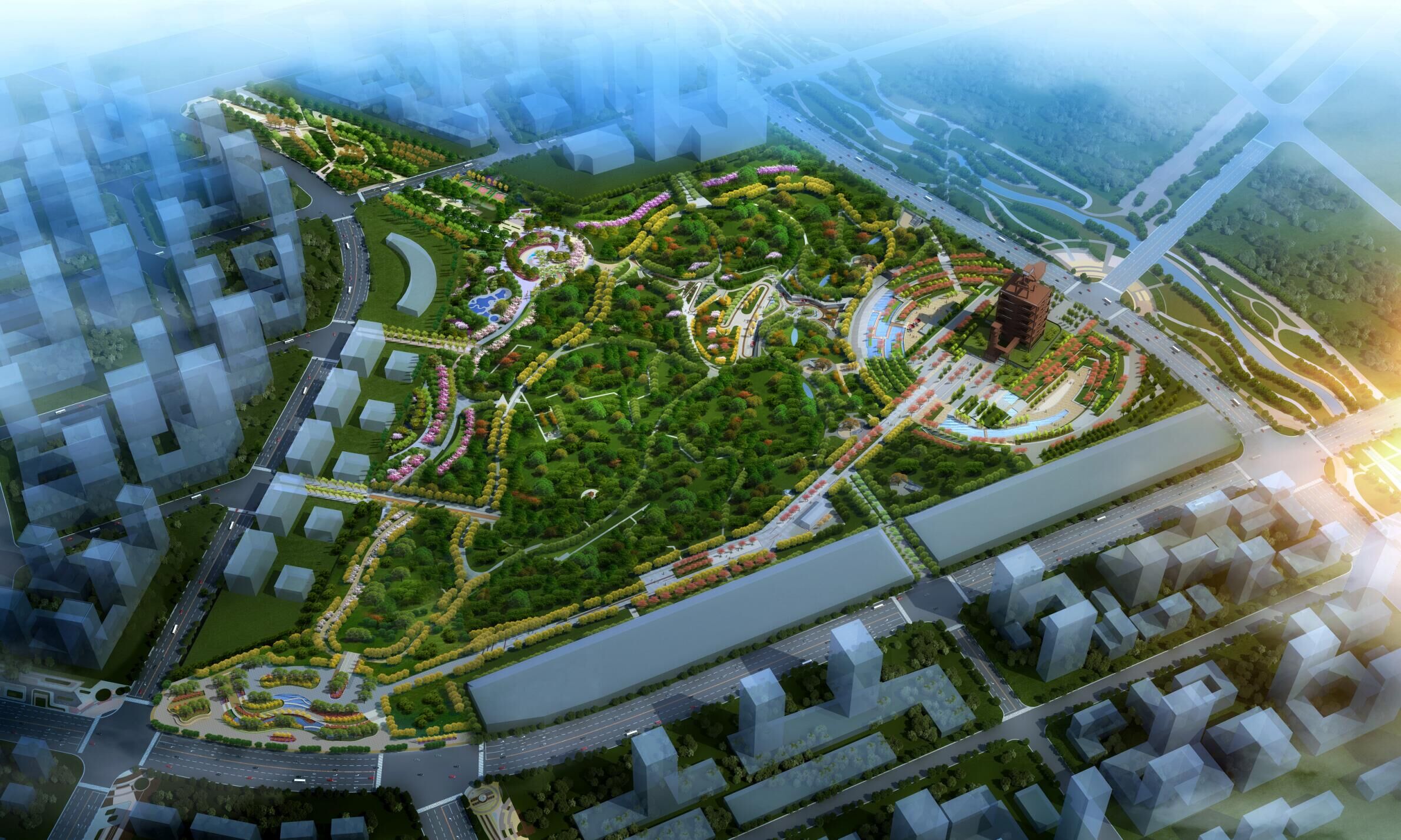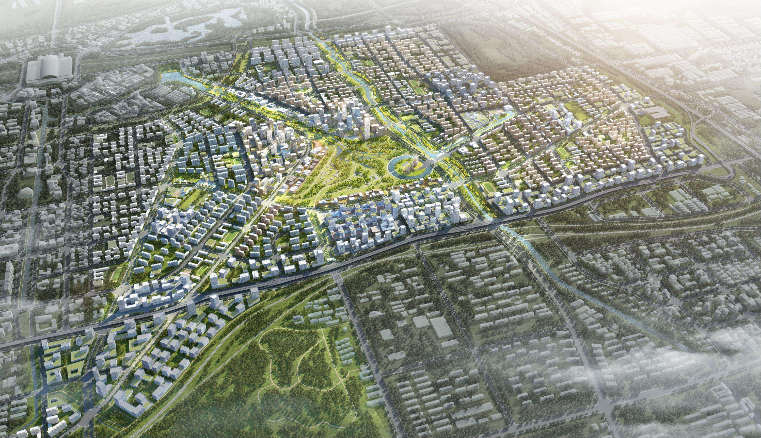 片區(qū)堅持生態(tài)優(yōu)先、綠色發(fā)展的理念,先行啟動中央森林公園、森林公園地下商業(yè)、韓倉河生態(tài)景觀帶綜合整治等項目的建設(shè)。其中森林公園占地面積約 680 畝,綠地率高達 86%,為濟南“東強”區(qū)域的綠肺;韓倉河生態(tài)景觀綜合整治項目融合生態(tài)防護、休閑游賞功能于一體,形成東部新城獨特的生態(tài)景觀。片區(qū)還將對濟鋼大門、3200 高爐等進行保留改造,形成新舊建筑形態(tài)的碰撞與融合,引領(lǐng)城市的更新和多元化發(fā)展。